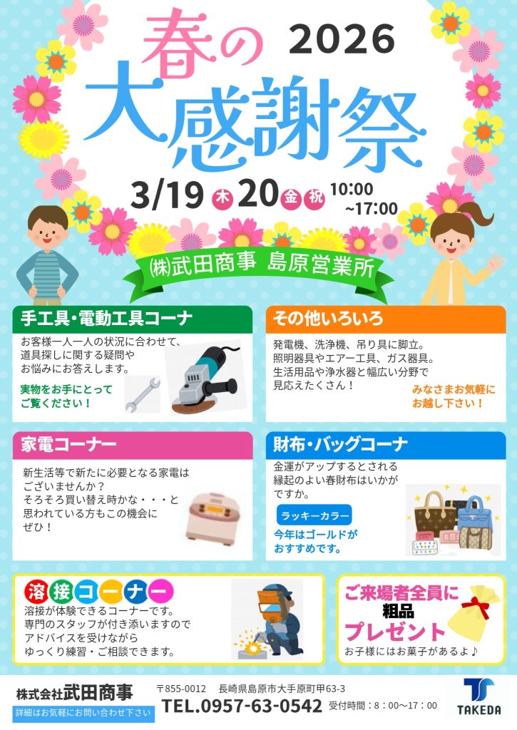 このたび「株式会社武田商事様主催 島原営業所 展示会」に出展いたします。